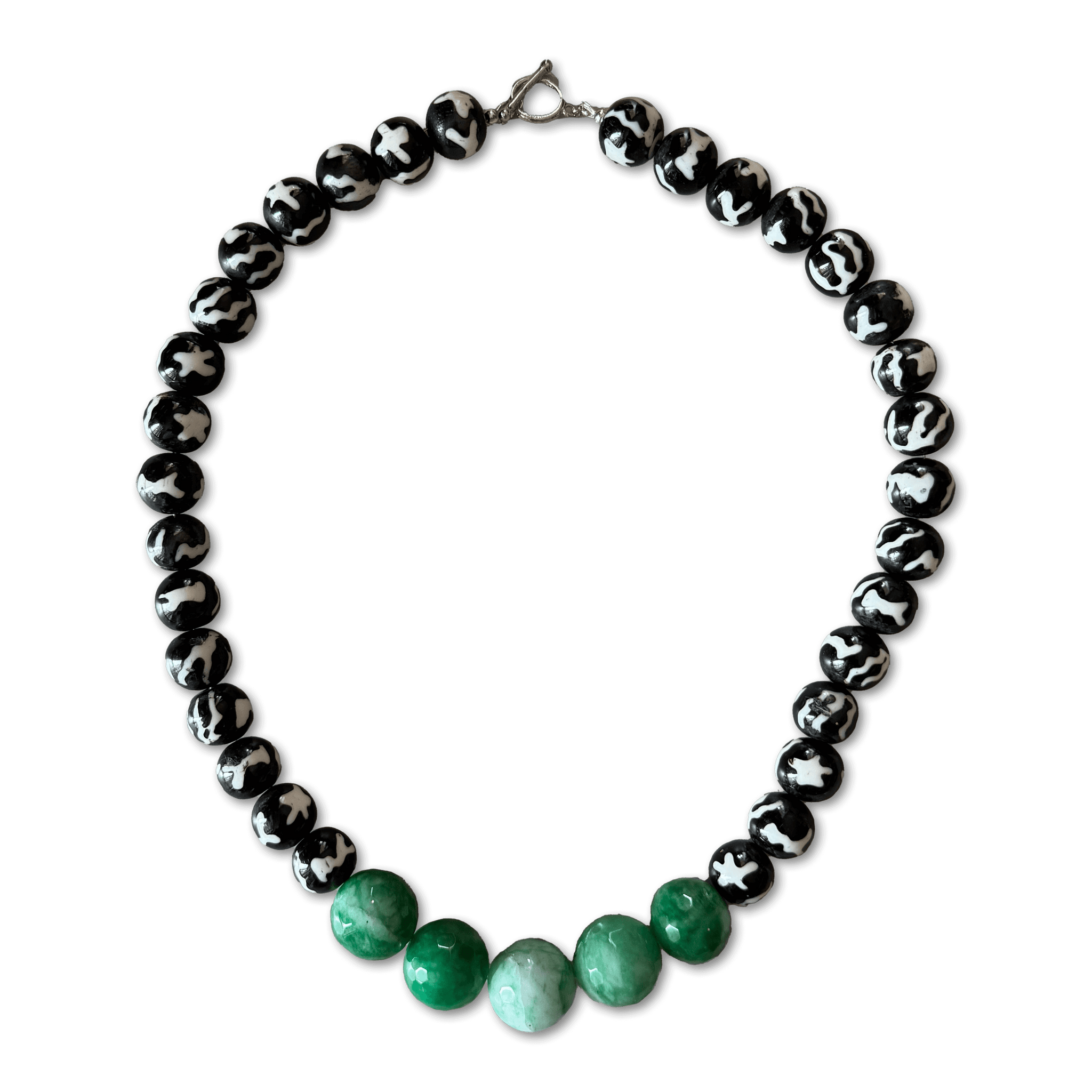 Jadeiit, akrüülpärl, roostevaba terasest kinnitus.